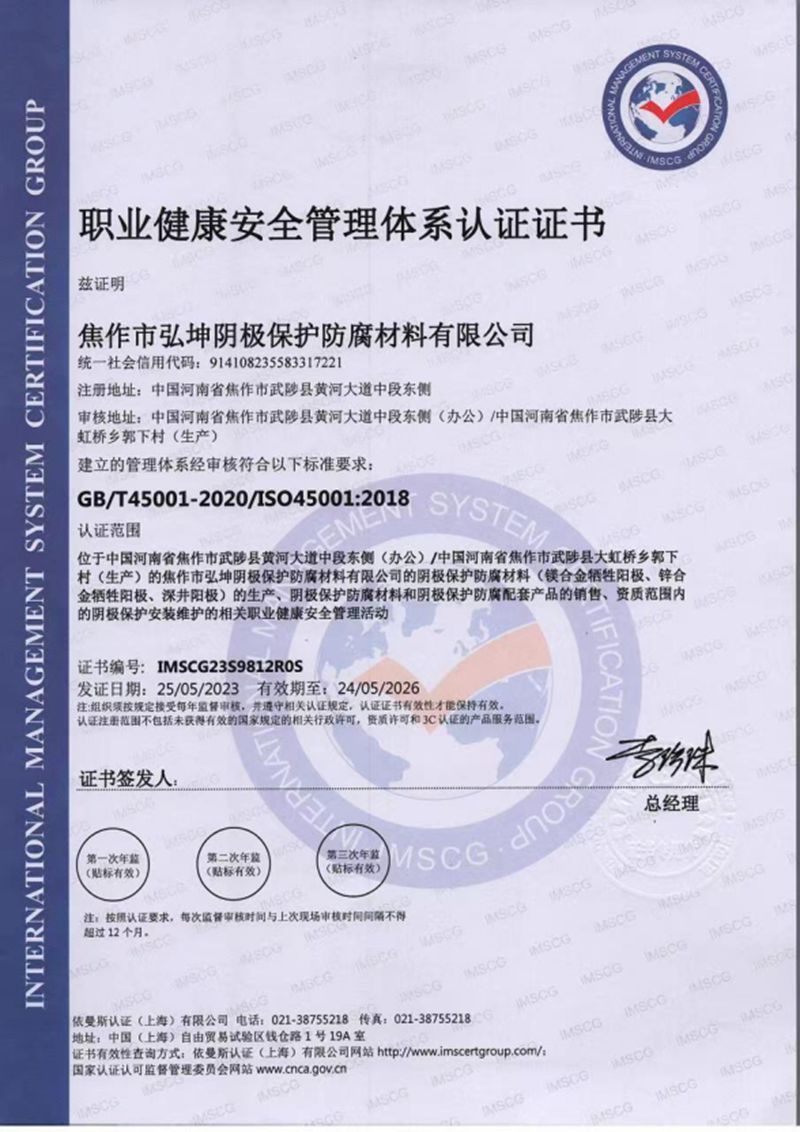 職業(yè)健康與安全管理體系認(rèn)證證書